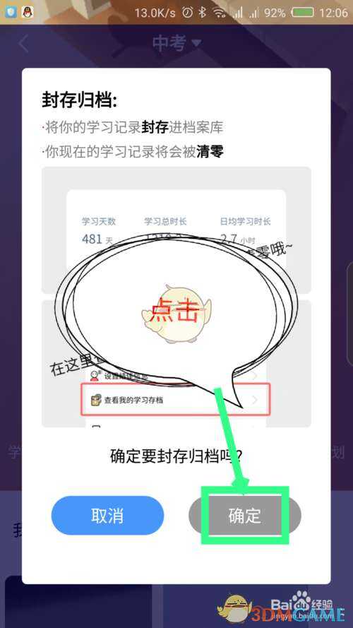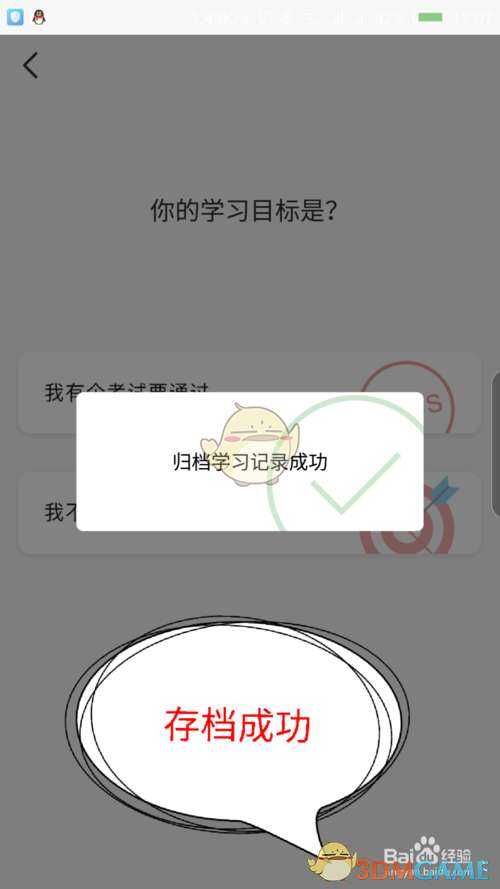 5、点(dian)击确定(queding)后,屏幕上(shang)面浍洧提(ti)示(shi),归档学习记录(jilu)成功,然后(Then)学习设置(shezhi)新(xin)的学习目标。如图所示