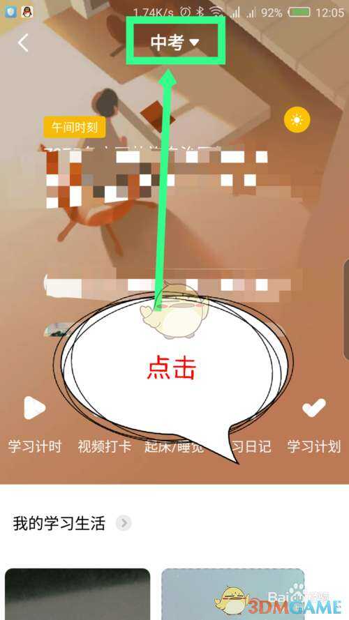 2、打(da)开界面后,点(dian)击上(shang)面的学习目标,如果设置(shezhi)的目标是中考,上(shang)面点(dian)击的就是(that is)中考。如图所示