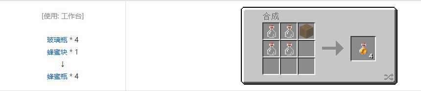同时蜂蜜瓶可用于合成糖,1 个蜂蜜瓶能够合成 3 个糖(会留(liu)下(xia)空玻璃瓶)。