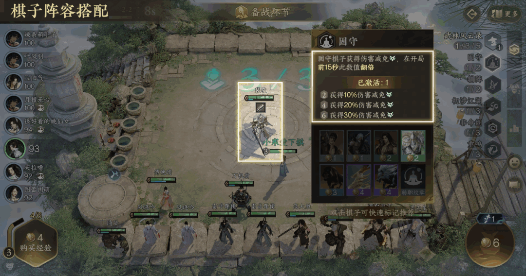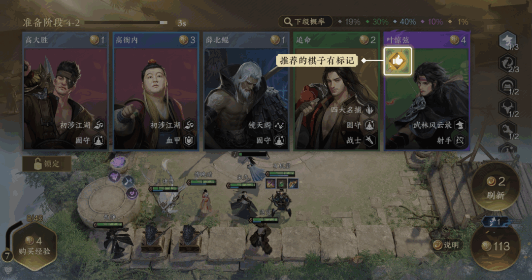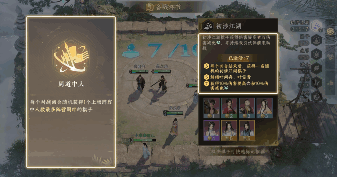 ①例:初涉江湖的羁绊效果,配合心悟“同道中人”,可以更加方便地获得同羁绊棋子,让棋子快速升到高星级!