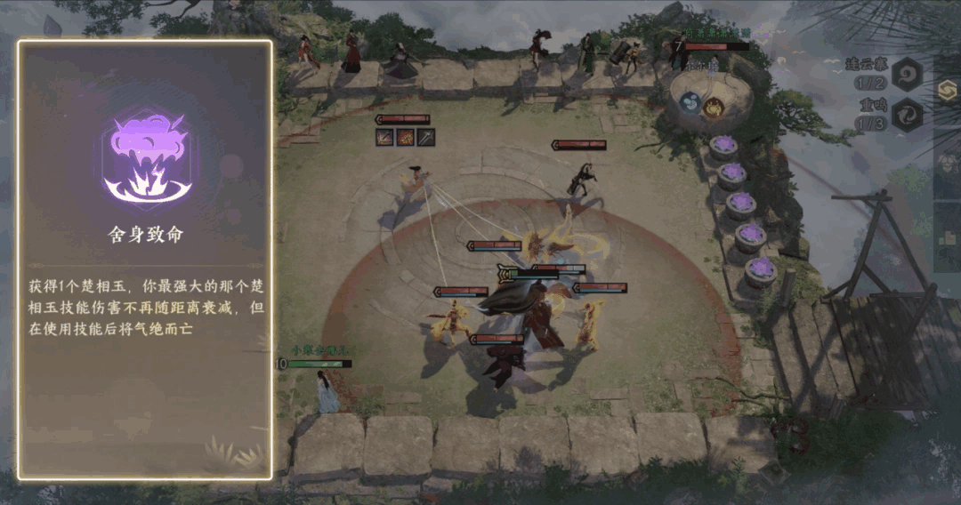 ②例:楚相玉配合心悟“舍身致命(ming)”,在对(dui)战中可对全场范围(scope)造成高额伤(shang)害(hai),瞬间改(gai)变(bian)局势!