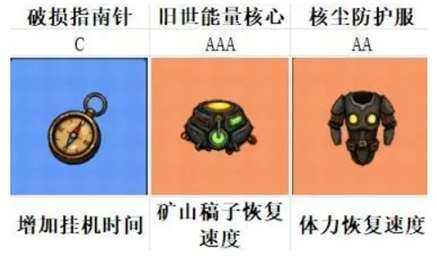 1.作为养成型游戏,资源为王,葰姒能带来资源增益的藏品可作为第一优先级升星核心以 恢复速度 资源收益 钞票获取为主,第一个就是破损指南针,品质低 收益高,主要是好升级,获取的收益也很稳(wen)定(ding);其次就是旧世能量核心,这个也很不错,优先级也是非常高的,挖矿的资源很可观;再就是核尘防护服,这个很重(zhong)要(yao) 玩家也can优先考虑,毕竟体力是这个游戏的核心,没有体力什么都干不了。