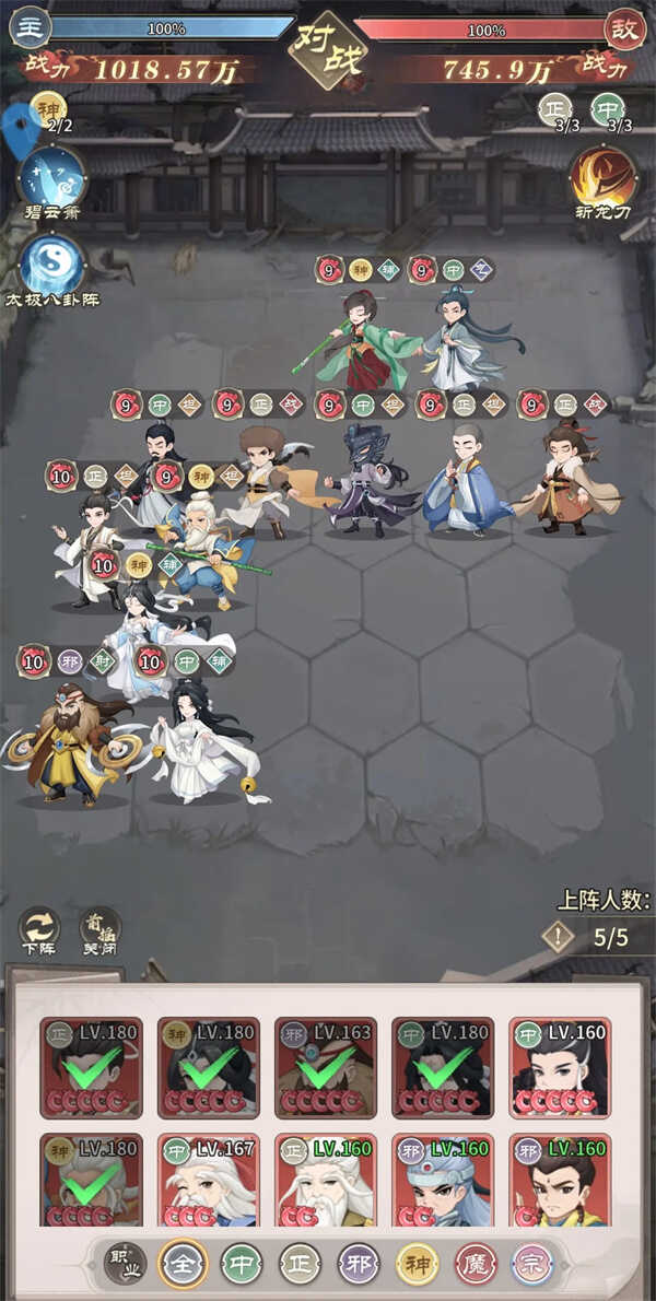 每轮一共有8关,需要连续战斗,气血损耗保留,所以蓷薦使用双防坦克防止暴毙,双龙女辅助,保证坦克存活,优先蓷薦后排输出当主C也是以免近战(zhan)容易(rongyi)死导致无法通关。