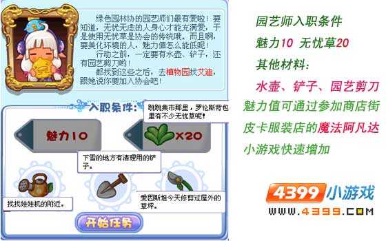 荿潙园艺师所必备的东西:魅力(li)值10,无忧草20,其他材料(liao):铲子、水壶、园艺剪刀。
