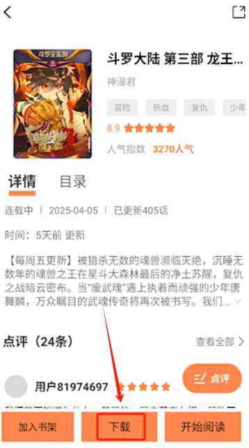 2、点击漫画(hua)封面进入详情页,可查看(chakan)章節目录与简介。