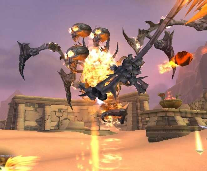 注意到场边的骆驼么?这些骆驼很给力的,骑上去以后它们会帮你打BOSS还允许你移动施法,很赞吧,不过缺点就是骑上去以后就不能带宠物了,所以恶魔术兽王猎之类的朋友(pengyou)就还是不要享受这个福利了。