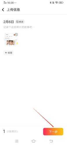 3、在上传信息(information)中,我们可(ke)以将关于(guanyu)这张照片的故事(gushi)写进来,或是添加(Add to)一些标签,填写完毕后,再点击右下方的“下一步”;
