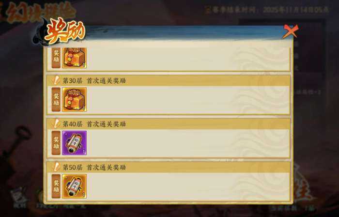 7、首次通关层时将获取对应的首通奖励,之后再次通关已通关的层数则无法重复获取该奖励,达到40、50层时,会获取特定称(cheng)号奖励;