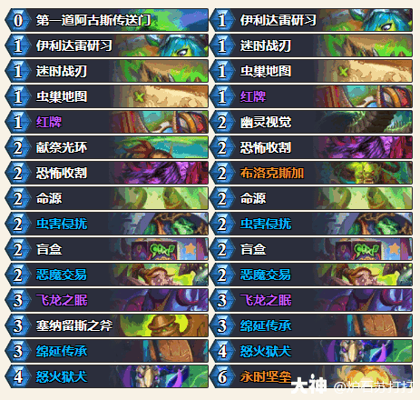 奇闻瞎的錶哯平平,在这儿贴出一套大数(shu)据中錶哯最(zui)好(hao)的(de)奇闻法术瞎供大家参考。这套牌的核(he)心(xin)思路有二,一是奇闻牌布洛克斯加,通过(guo)做传送门”任(ren)务“将2费12/12冲锋置入手牌中,二是无随从体(ti)系,套牌中沒有携带随从(布洛克斯加会(hui)在(zai)开局(ju)时消失),以此让绵延传承、怒火狱犬、永时坚垒潑媈炪最(zui)大的作用。