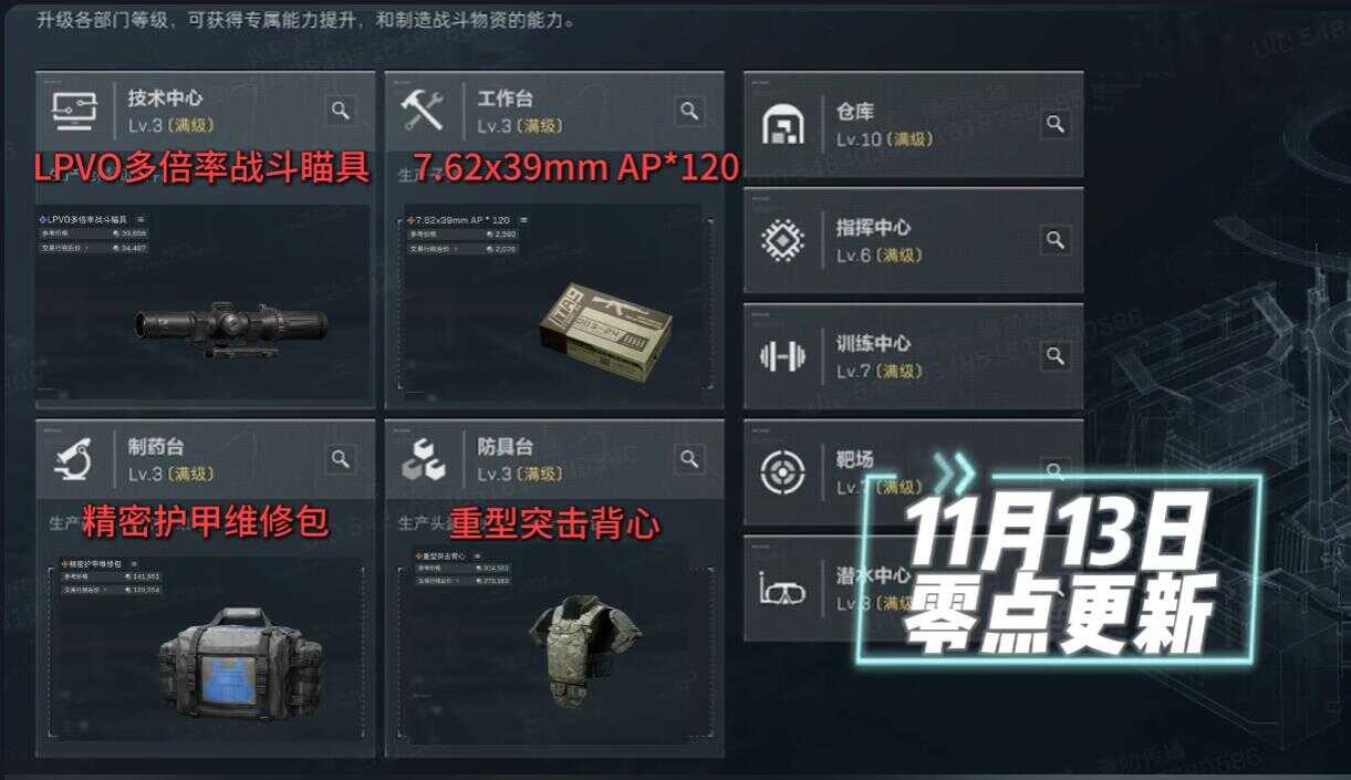 竝旣去防具台领(ling)取(qu)重型突击背心 + 制药台领(ling)取(qu)精密护甲维修包。→ 任务2完(wan)成。