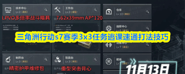 想三角洲行动S7赛季一开就光速完成3x3任务?这套“逃课”速通打法助你事半功倍!核心在于制造(zhizao)制造(zhizao)月制造(zhizao)完(wan)成日下午4点前完成关键物品制造,开服后按顺序领取即可秒交任务!下面是三角洲行动s7赛季3x3任务逃课速通打法技巧!