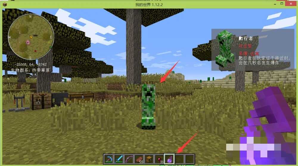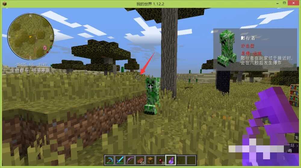 朝爬行者右键丢虚入药水,听见“呯”的一声,玻璃碎掉的声音,爬行者身上冒出灰色的泡泡,就被虚弱了。