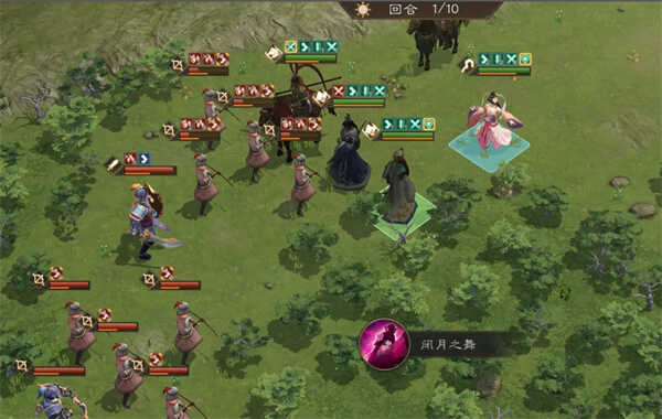 吕布群魔乱舞将前排射手杀掉,第一回(hui)合结束时,郭嘉就牺牲了,这时候我们把乐进的buff打掉!