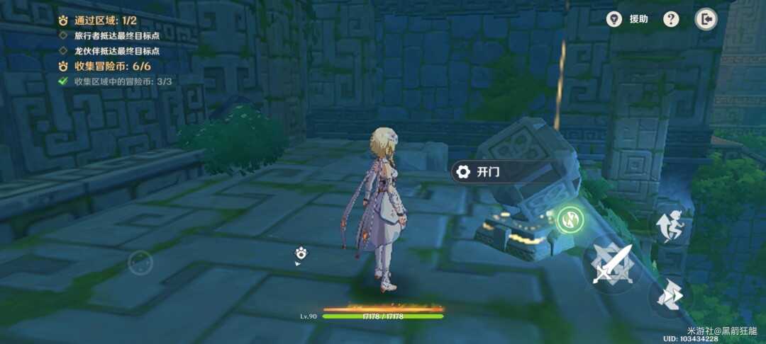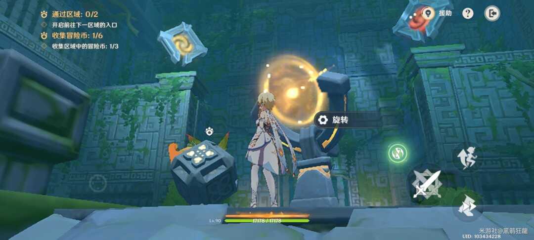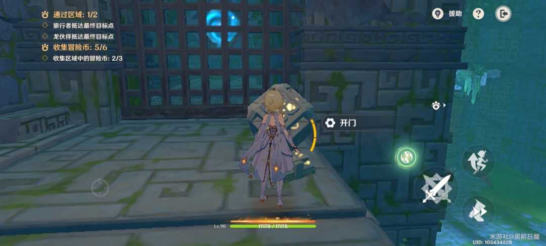 切换旅行者,右边楼梯上去拿第四个金幣,并启动机(ji)关。
