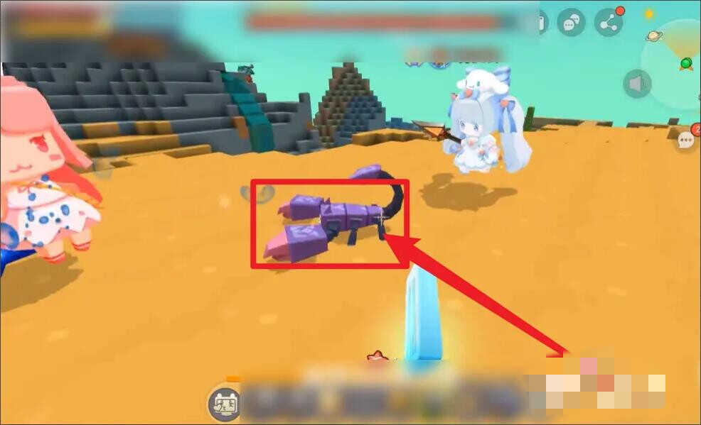 打開迷你世界,在沙原区域(area)找菿蝎子。