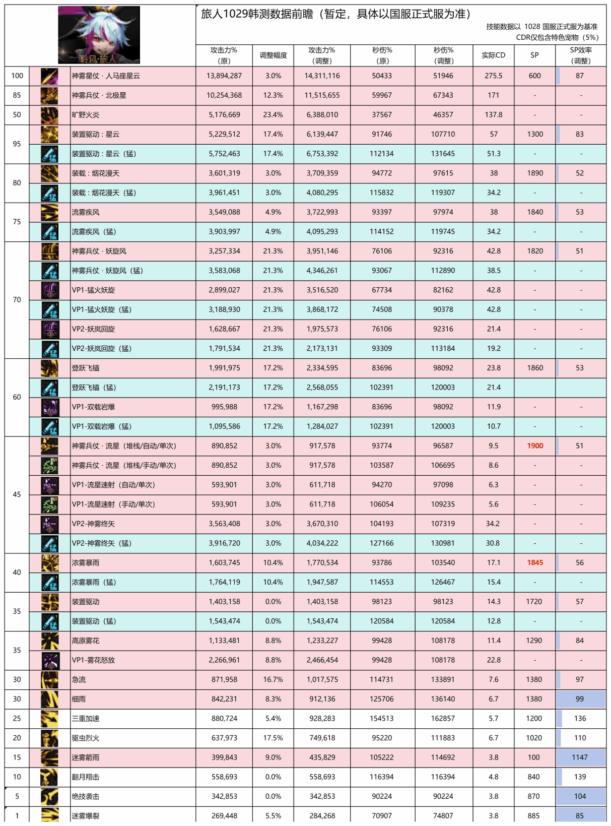 因装置驱动技能未做数据变动,导致地位相对下滑,急流和细雨的数据有一定(yiding)提升,建议将装置驱动的SP点转移至急流和细雨,剩余的点数再补到装置驱动即可