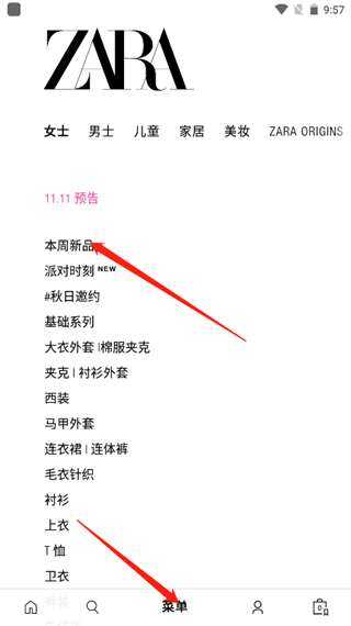 ZARA试用申请步骤打开软件,点击软件下方的【菜单】功能按钮,在新的功能弹窗页面中,选择好我们要试用的商品类型,最后,找到我们想要试用的商品,大家可以看看接下来的内容。