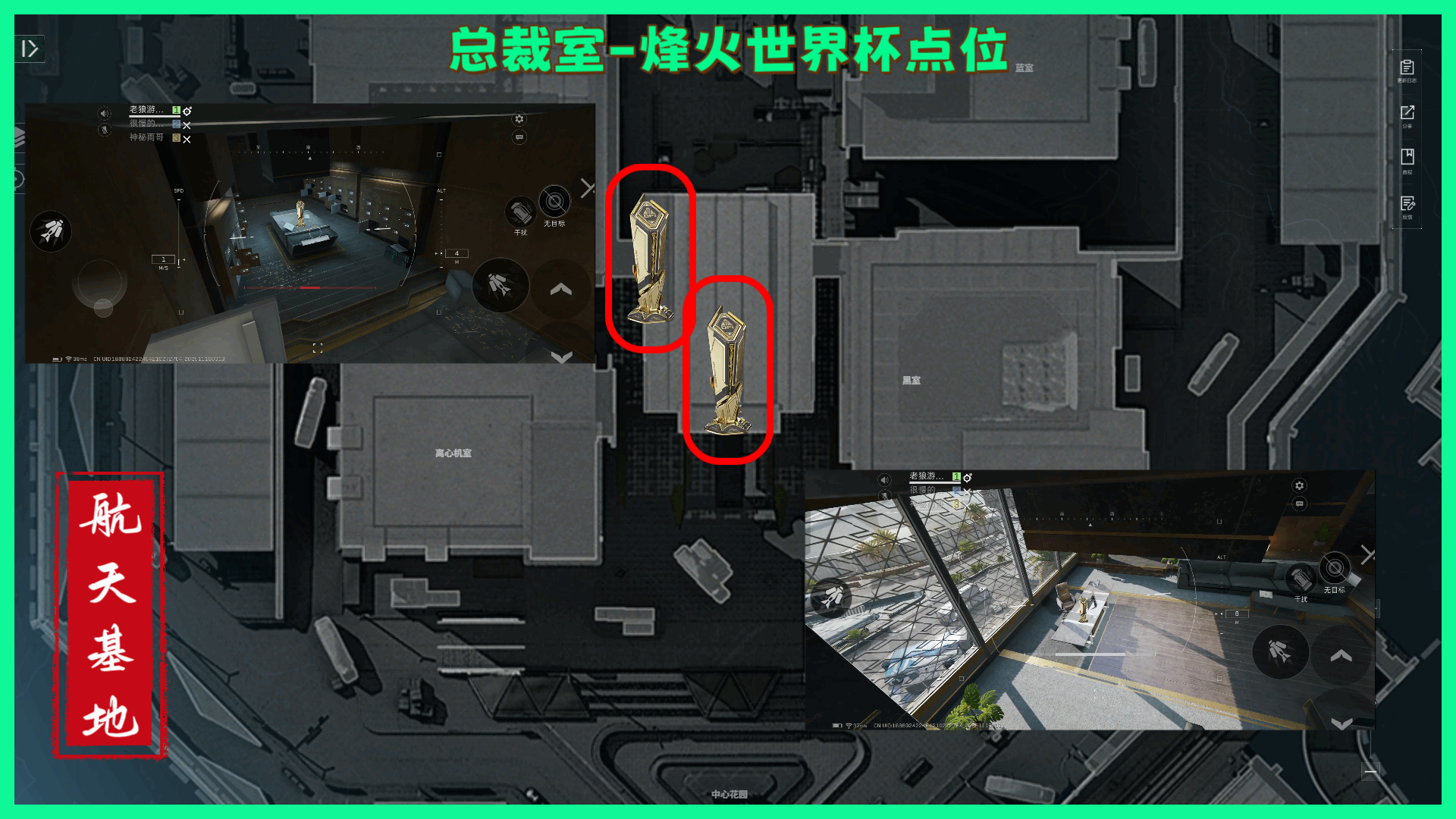 S7赛季新增3格大红,烽火世界杯纪念奖杯,价值(zhi)2025921哈夫币,这个(zhege)价值(zhi)刚好是夺冠時間!烽火世界杯纪念奖杯全部都是露天刷新,在S7赛季会在零号大坝、巴克什和航天基地这3张图刷新。其中爆率绝密地图>机密(水淹)地图>普通(tong)地图,所以在打高难度(gaonandu)地图的同时,也不要忘记看一眼刷新点位,否则就会变(bian)成(cheng)漏勺哟!话不多说我们直(zhi)接(jie)开始(kaishi)航天基地点位图!