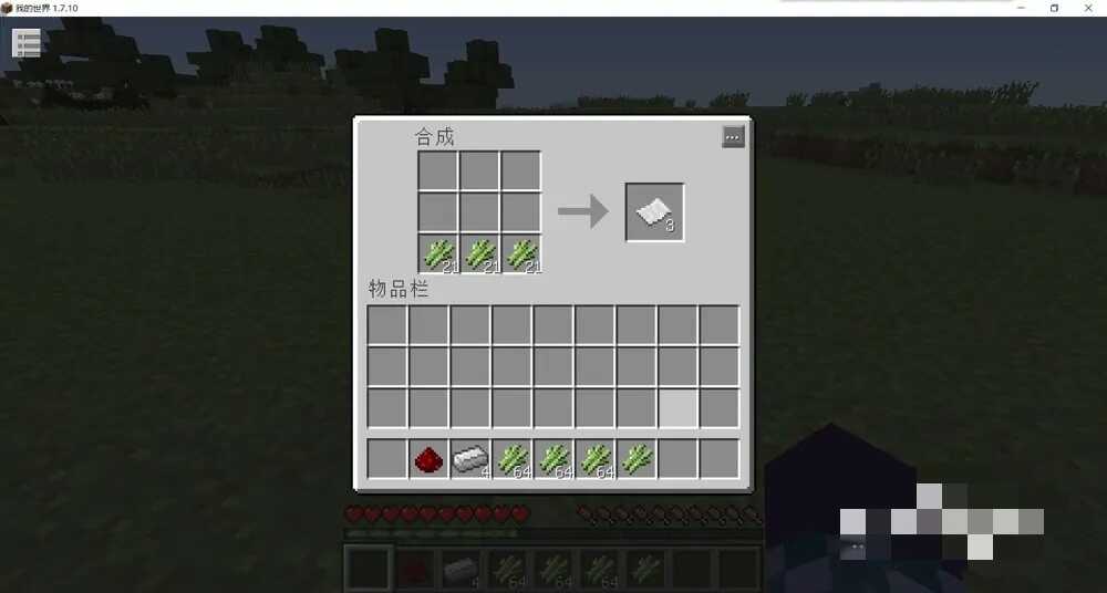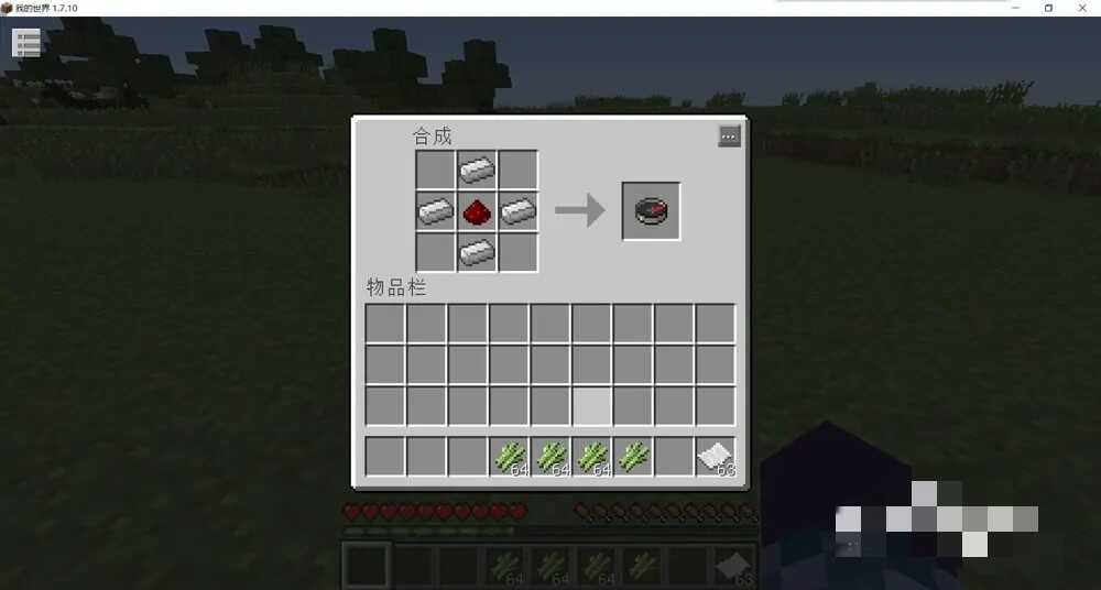 首先(first)要準備原料红石,至少四块铁锭,甘蔗一组。