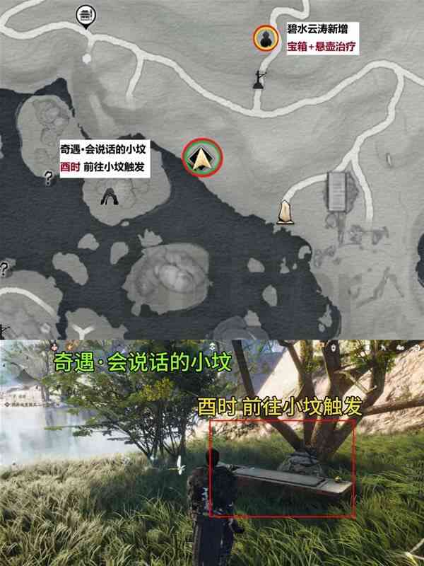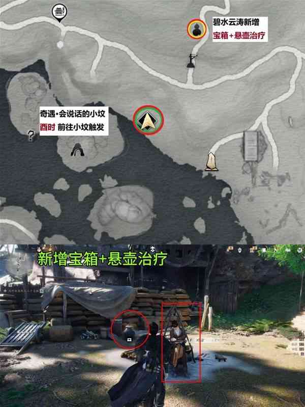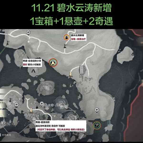 燕云十六声2.2.5A版本碧水云涛新增收集品位置(zhi)一览1宝箱+1悬壶治疗+2奇遇(会说话的小坟、逐浪光阴)