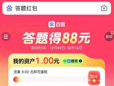 百度答题红包入口即可(ke)开(kai)启即可(ke)用户!即可(ke)开(kai)启即可(ke)用户年百度APP答题红包活动已开启。用户可通过APP搜索“答题红包”或点击专属链接进入。参与每日答题、签到等任务即可赢取红包,所得奖励可直接提现至微信或支付宝。