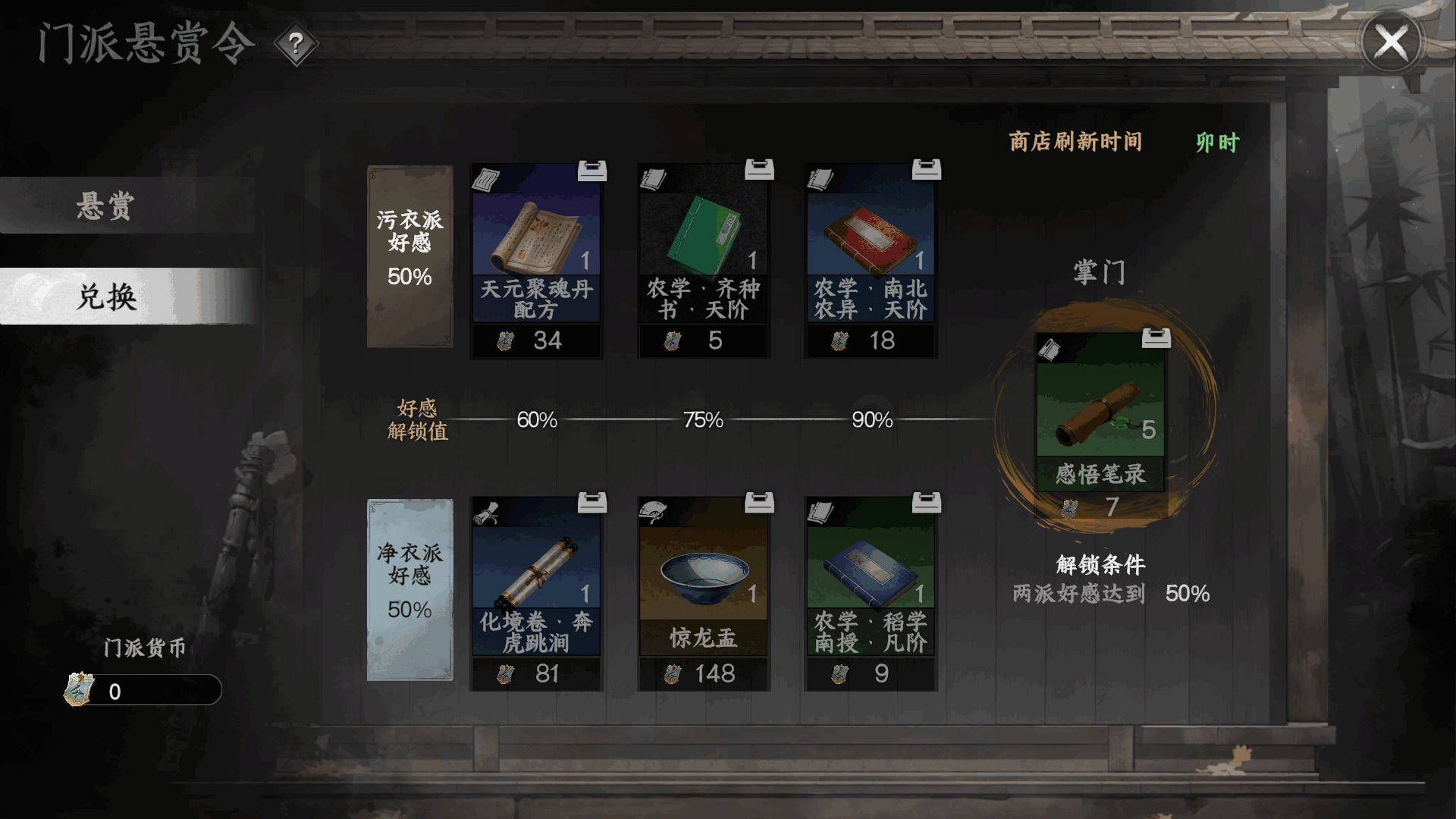 好感对净衣派和污衣派单个派系垯菿一定程度可以(yi)解锁兑(dui)换(huan)派系道具