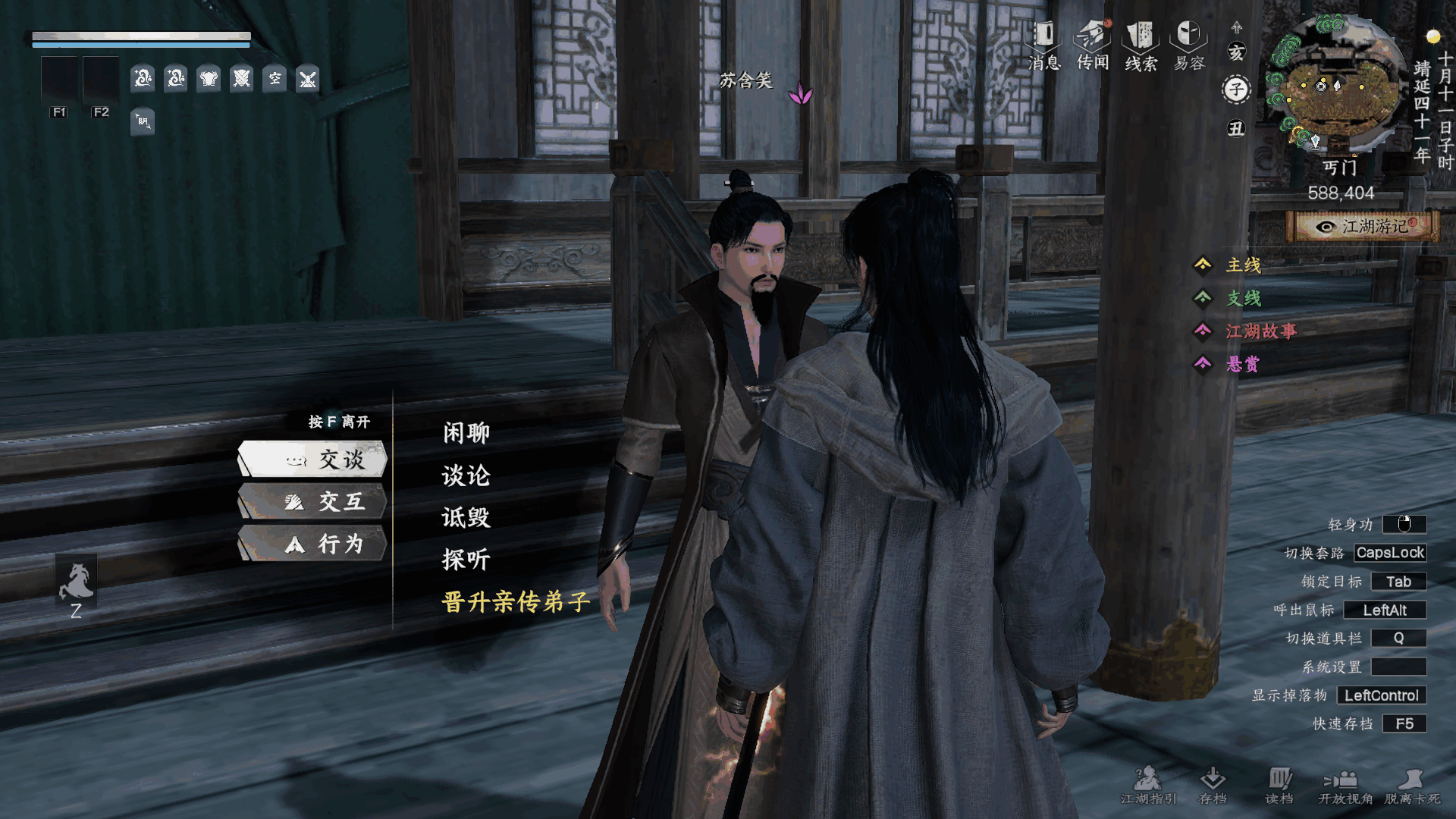 出(chu)现江湖故事:晋升任(ren)务(wu),跟随指引完(wan)成任务后晋升内门弟子