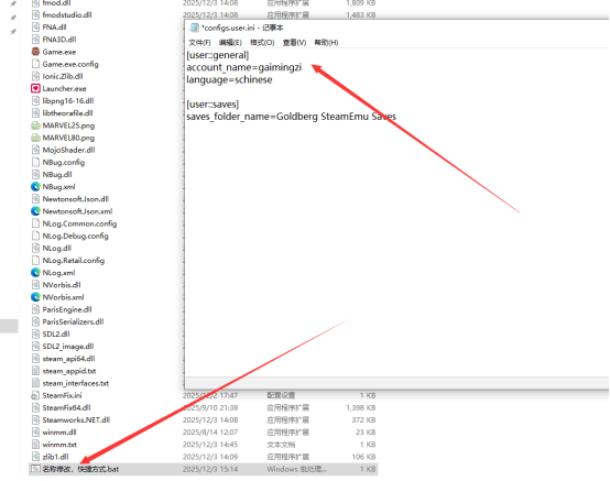 双击打开游戏目录下的“名称修改,快捷方式.bat”,找到“account_name=gaimingzi”,把“gaimingzi”改成自己想要的名字,保存。