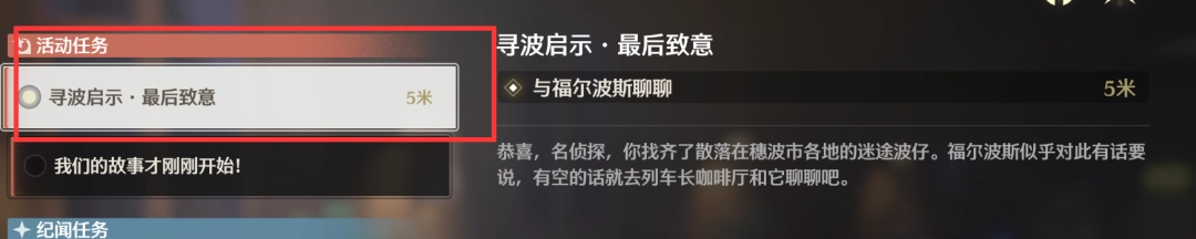 找到12只波仔后即可(ke)出现活(huo)动任务(wu),与福尔波斯对话(duihua)即可(ke)(需先做完穗波物语的前置才会出现该活(huo)动任务(wu))