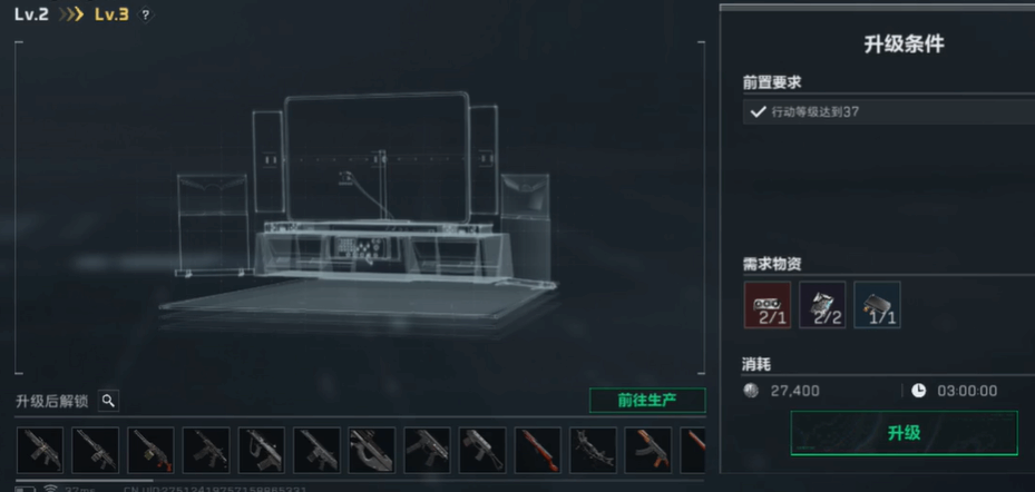 三角洲行动技术中心升级材料一览表等级(grade)材料1级续电器*1、医疗无人机*1、手柄*12级转换(huan)插座*1、SOS电脑主板*2、HIFI声卡*23级液晶显示器*1、SOS电脑主板*2、显卡*1