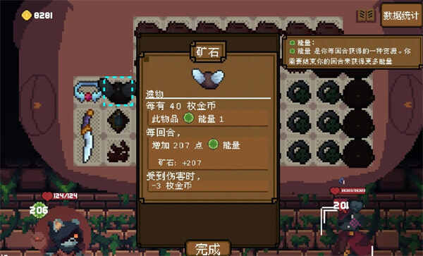 4、在第三层Boss拿到遗物:矿石每40金币增加一能量,来保持匕首的多次使用。