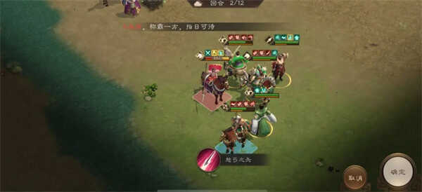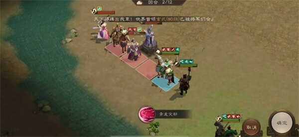 第一(diyi)回合,黄忠张飞关羽往后撤两步,徐庶给关羽加攻,刘备群BUFF。