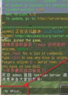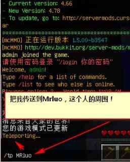 2.在那个闪着光标的位置(Location)输入(enter)如下指令/tp 游戏者名字我想TP我们(men)服务器中的小伙伴(xiaohuoban)“Mrluo” 那么我就输入(enter)“/tp Mrluo”