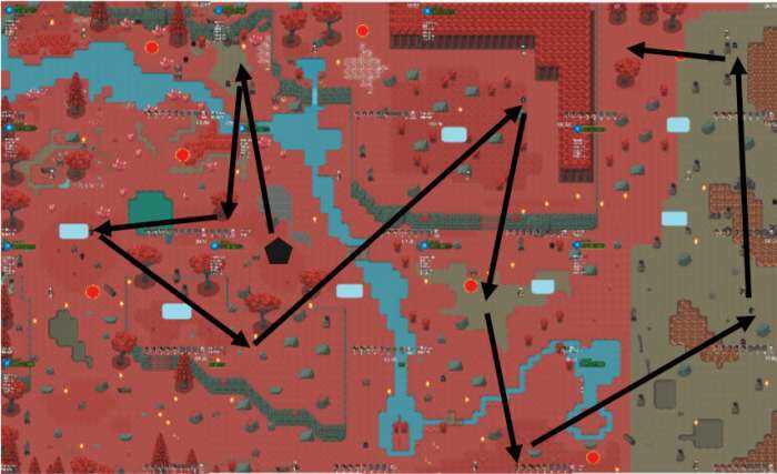 如图,从进入(ru)禁地开始(shi),往上走开始(shi)進行刷图,只刷蓝色,如果能7分50秒完成蓝色怪全部清空,那么(So)在最後一个(yige)传送门位置等待至倒计时2分鐘,等待最後一个(yige)传送门刷新后开始(shi)跑图获取(Obtain)传送门信息(information)。