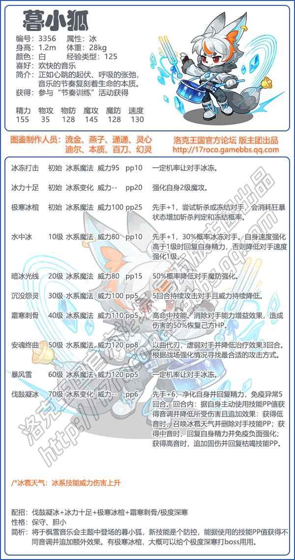洛克王国暮小狐技能表简析:将于枫雪音乐会主题中登(deng)场(chang)的暮小狐,新技能是个防控,能据使用(yong)的技能PP值获取不(bu)同音调并追加额外(additional)效果(xiaoguo)。