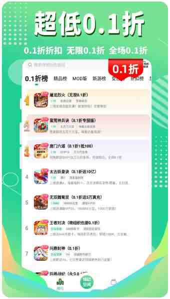 以上就是小编整理的0.01折手游平台哪个厉害最新资讯,更多文章相关内容,欢迎持续关注本站。