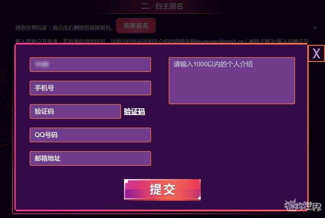 如果小伙伴是从官网进入頁面的话,需要在报名前输入迷你号和密码登录一下,之后填写你的手机(shouji)号、验证码,个人介绍等信息后点击提交即可看菿报名成功提示(tishi):