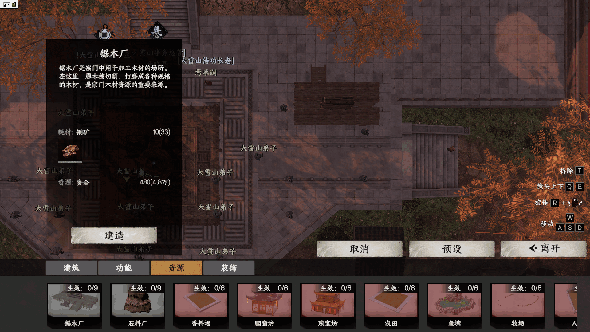 要致富先挖矿和砍树,获取宗门木材和宗门石料,是建造宗门建筑必不可少的资源,分别建造9个