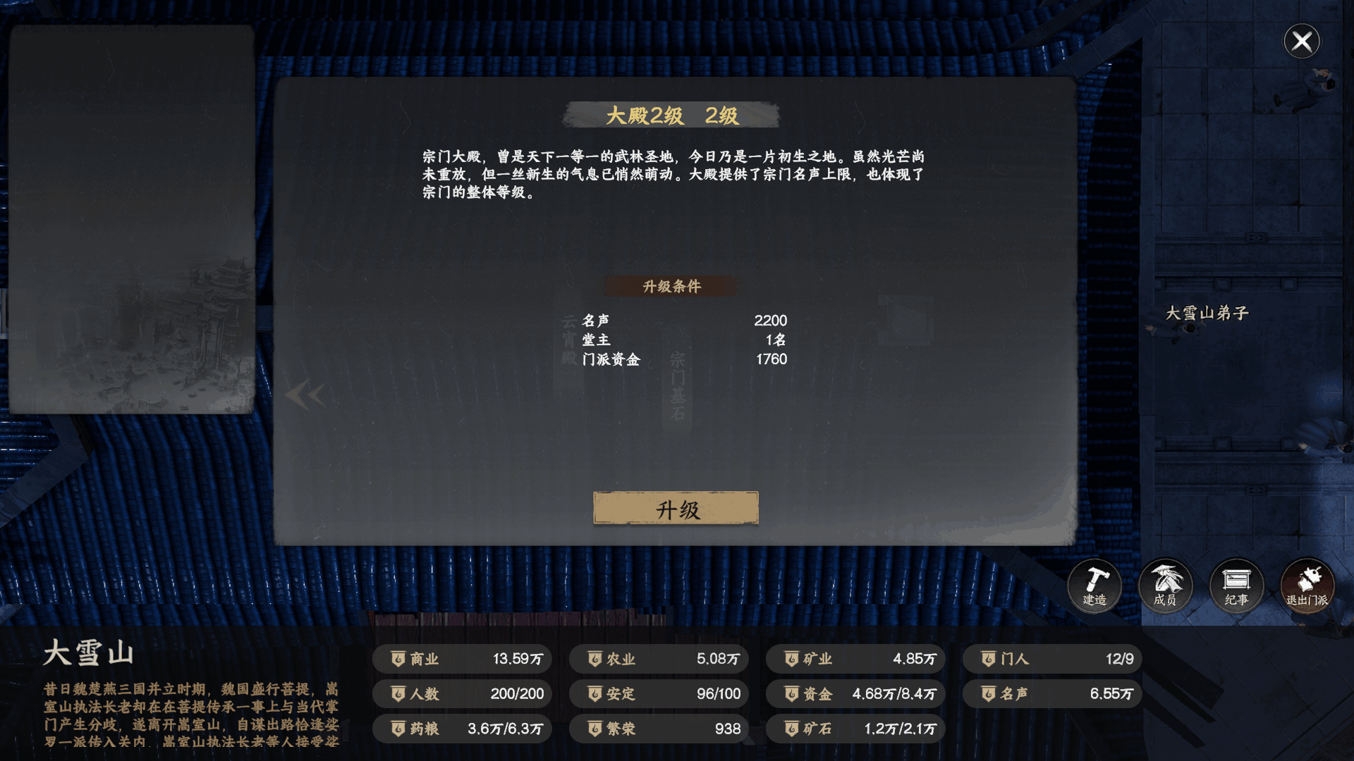 商业可以建造富贾阁派遣门人完成任务增加,商业提(ti)升(sheng)也会增加获取的资金