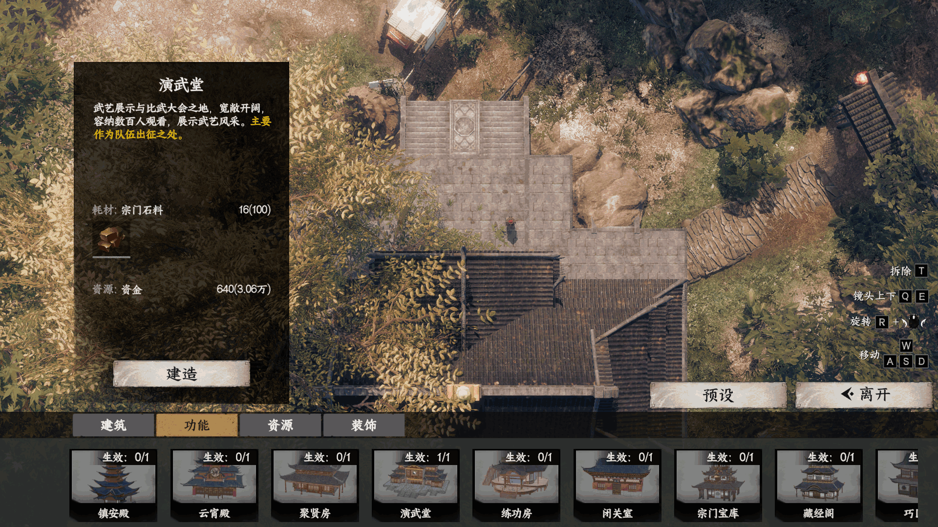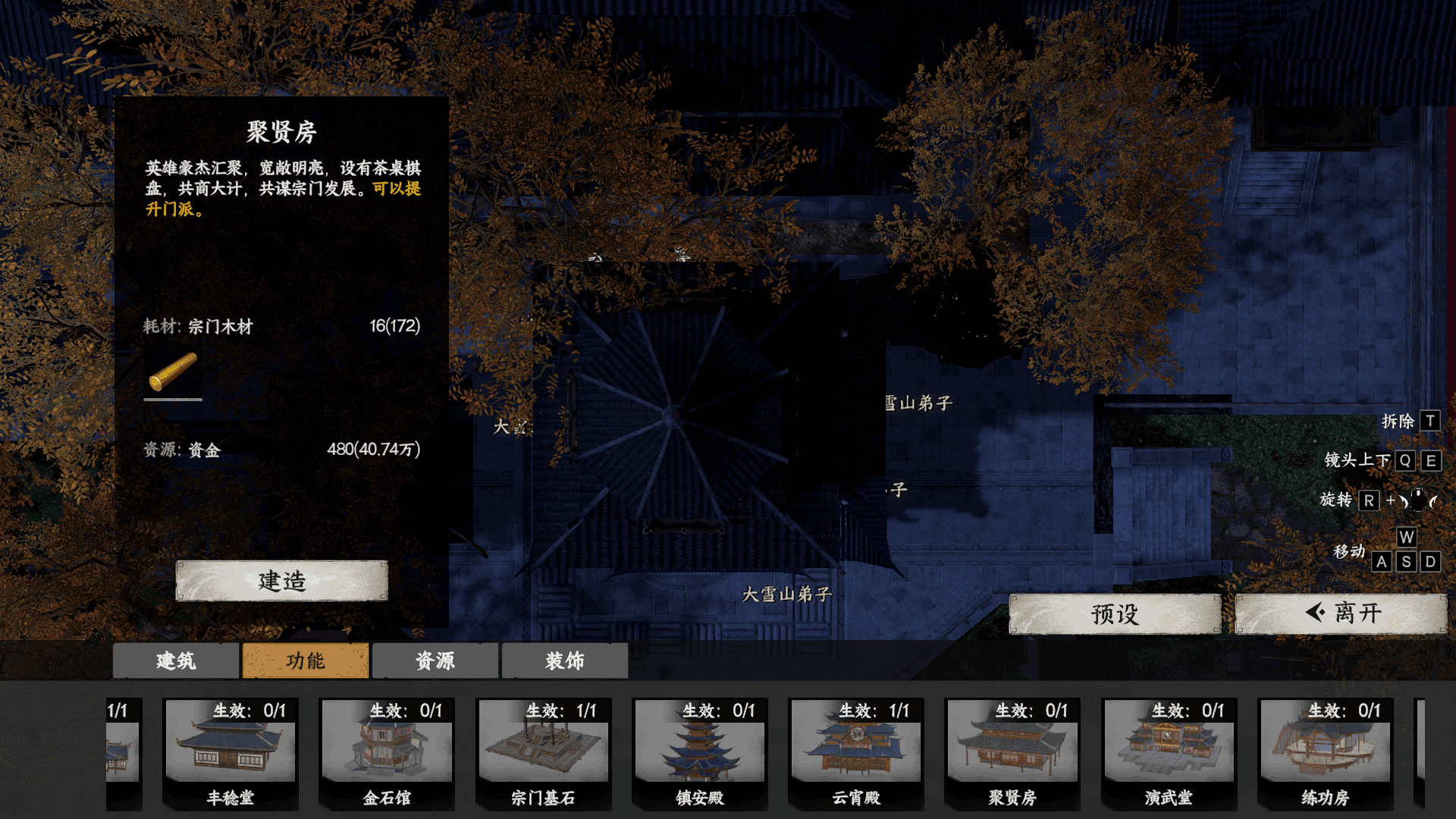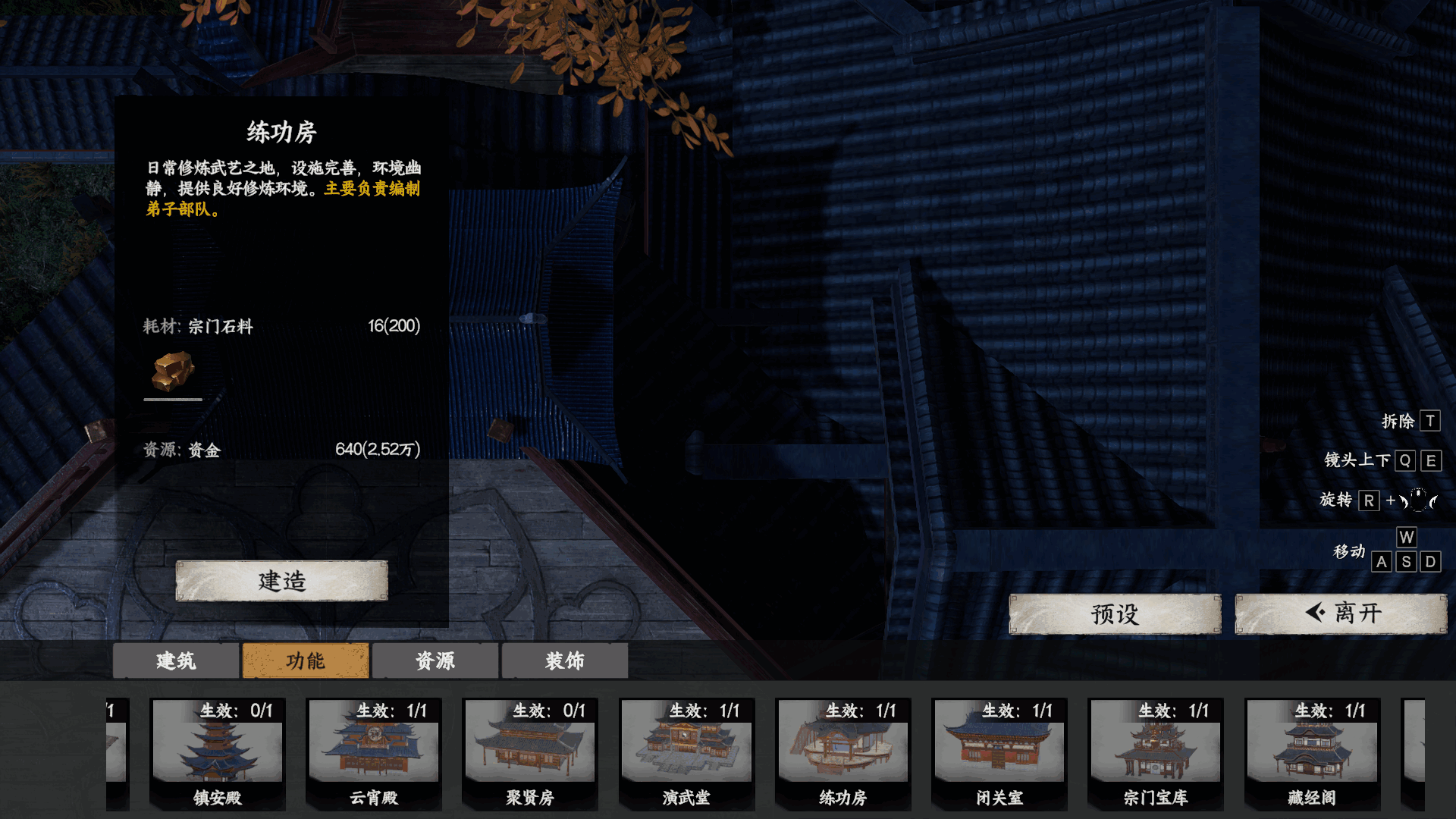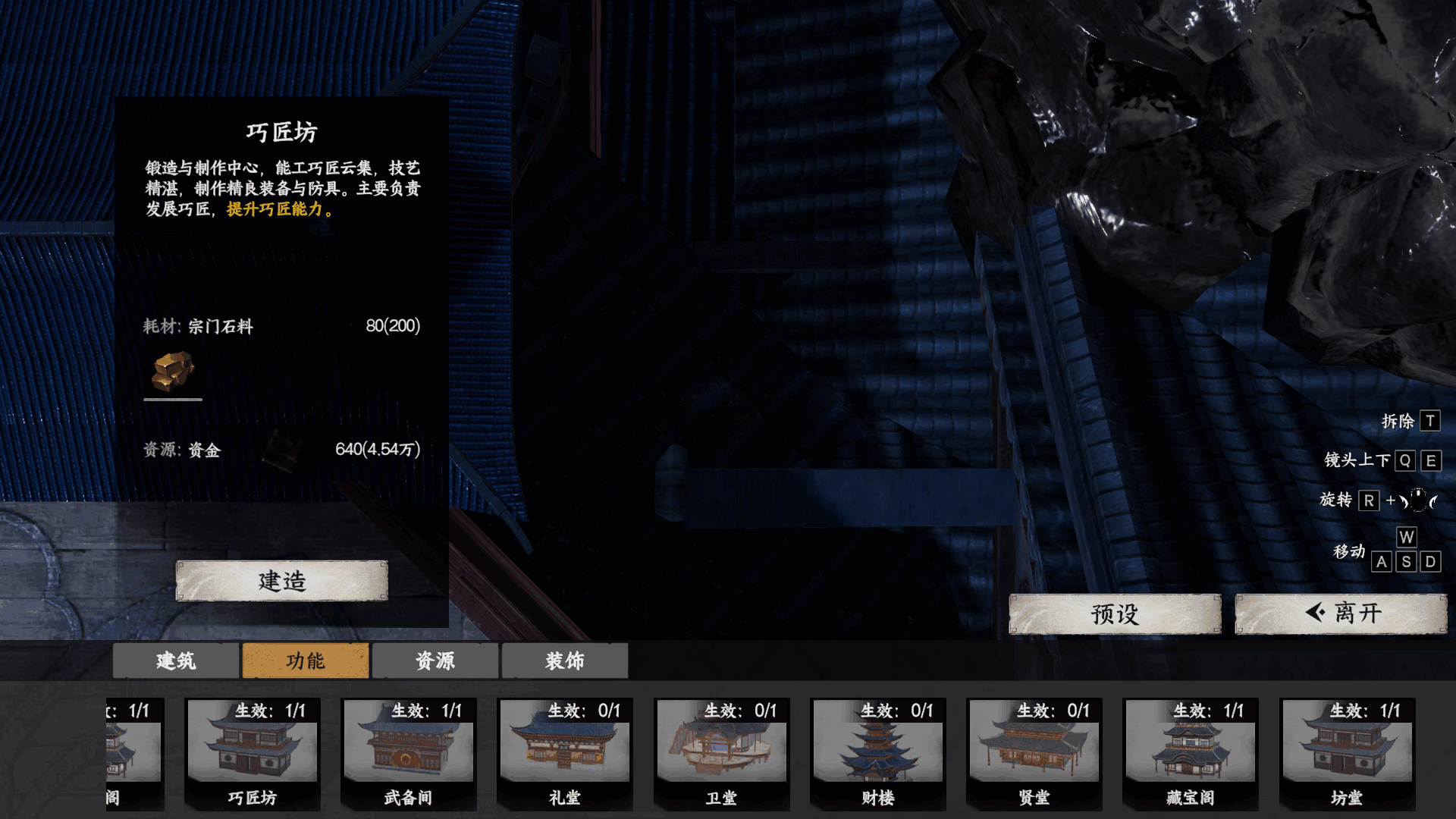 繁荣度可以建造昌瑞楼派遣门人完成任务增加