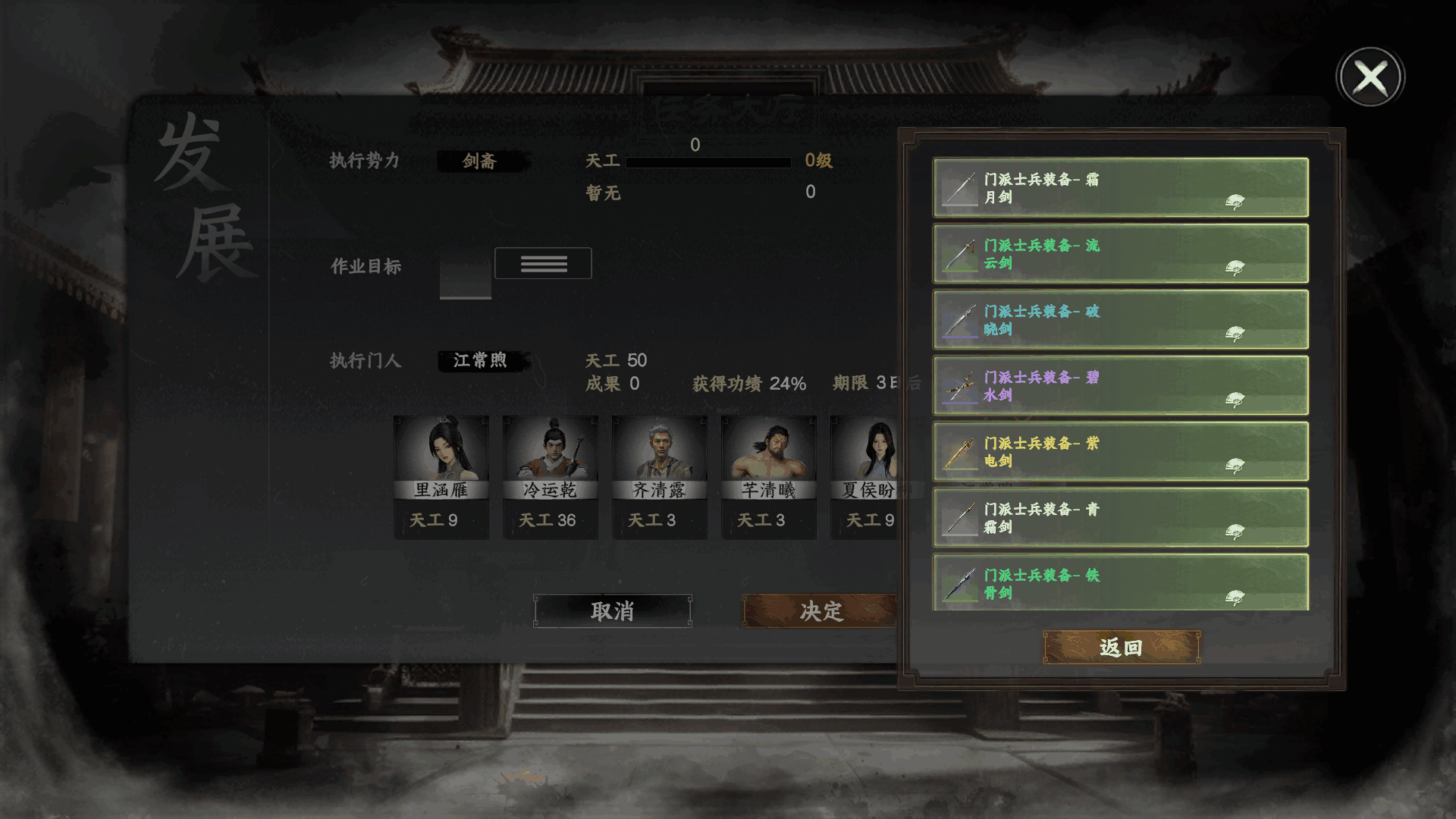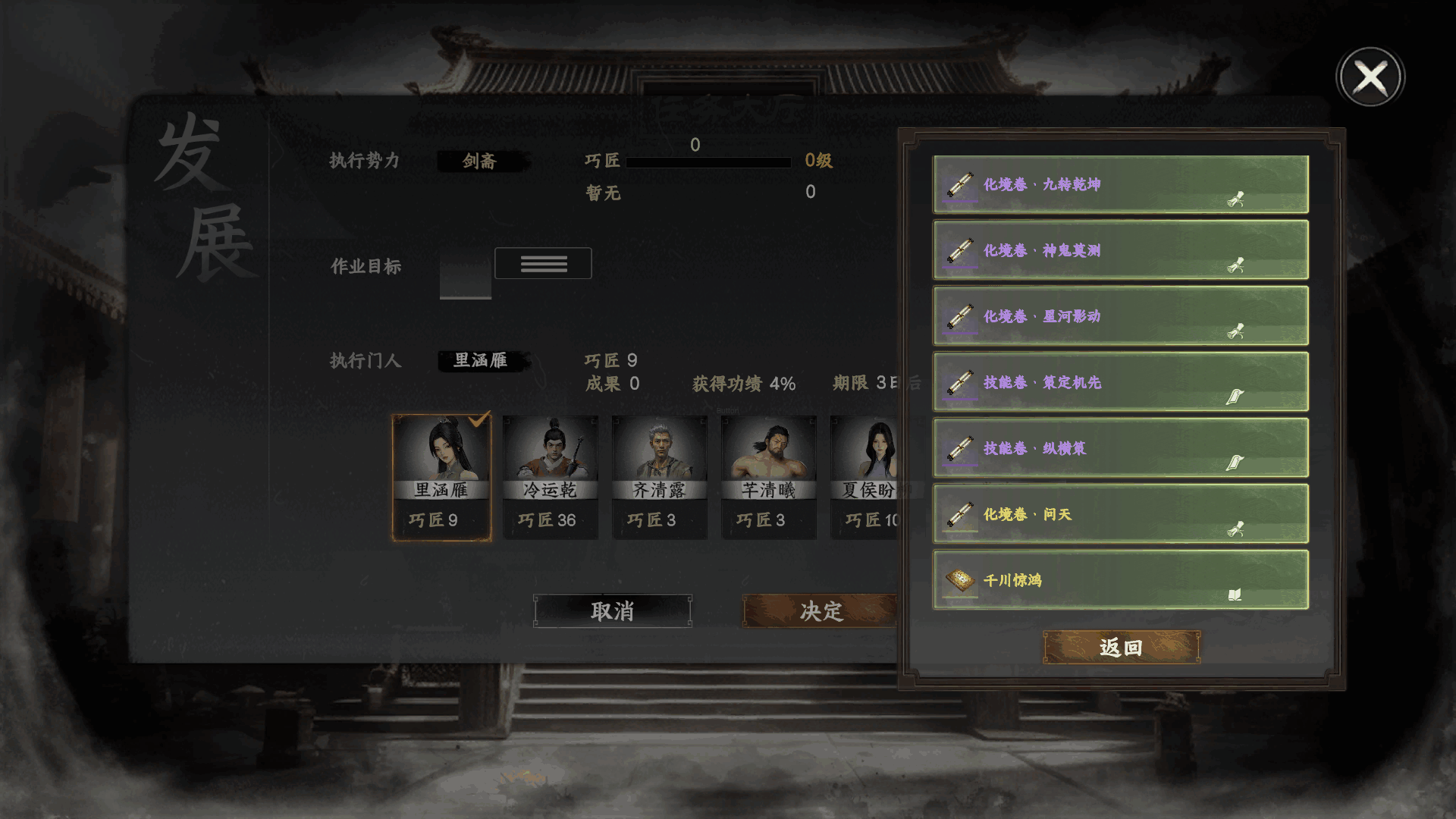 吞并势力后可以建造巧匠坊派遣门人完成任务获得武学 化境卷
