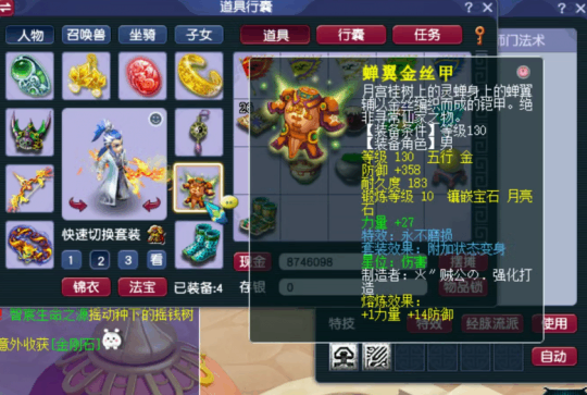 腰带位置(Location)为150级凝气诀、不磨、变身(shen),镶嵌了4锻黑宝石,任务用它没毛病。