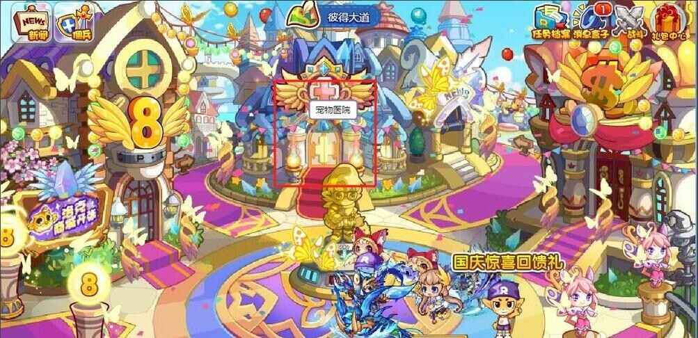 洛克王国游戏里面的宠物医院位置介绍:首(shou)先(xian)、首先点击上面的地图;选(xuan)择、然后在地图上选择彼得大道;夰袑、来到彼得大道之后点击进入宠物医院。