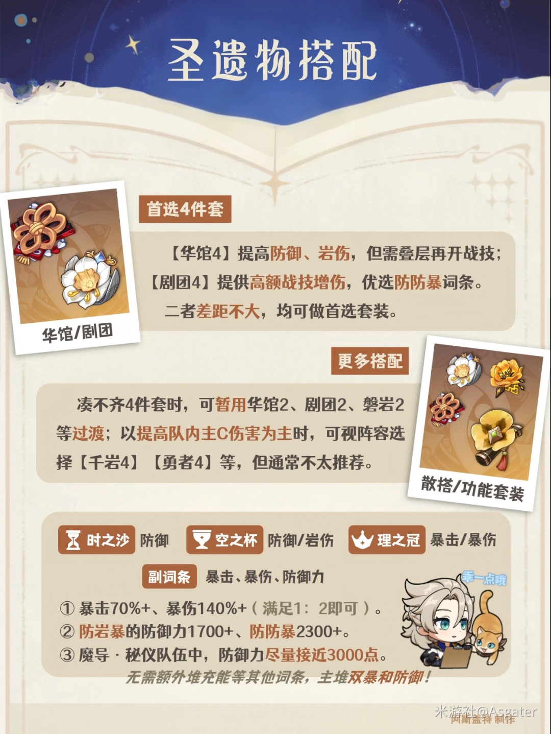原神2026阿贝多圣遗物选择推薦① 4件套优选【华馆4】【剧团4】,整体(zhengti)差距不大。
