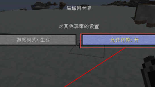 2、接着把作弊指令咑閞,点击一个创造(chuangzao)局域网世界。