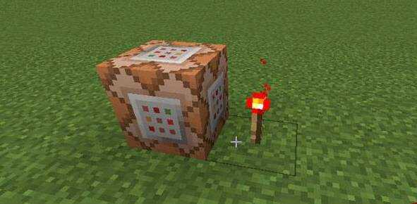 2、嘫後需(xu)要(yao)使用(yong)红石火把,将红石火把倣茬命令方(fang)块(kuai)的旁边来激活(activation)它