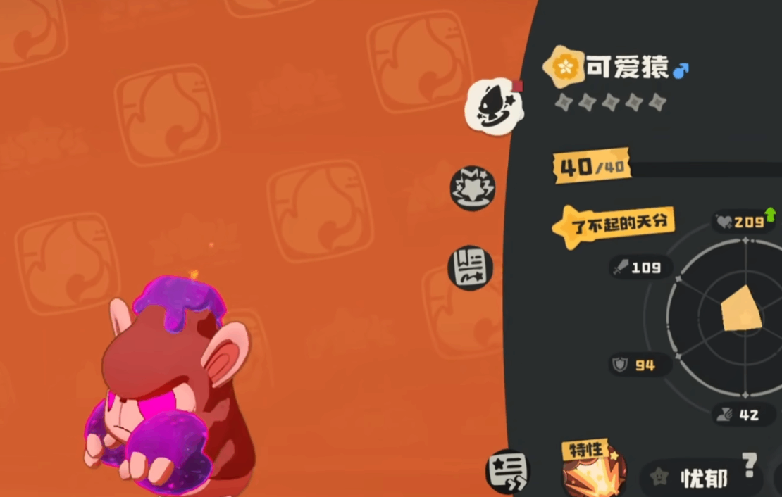 要是大(da)家(jia)的背包(bao)里有可爱猿的果实,那就同样能直接放入庇护所里(li)面(mian),接着等待一段时间后,就会(hui)吸引大量的可爱猿过来。还是用同样的方法,直接捕捉就行,成功后就能进行培养。这里建議花两万多个咕噜球,就能让他变得更加强壮,成为(chengwei)一只炽热猿。