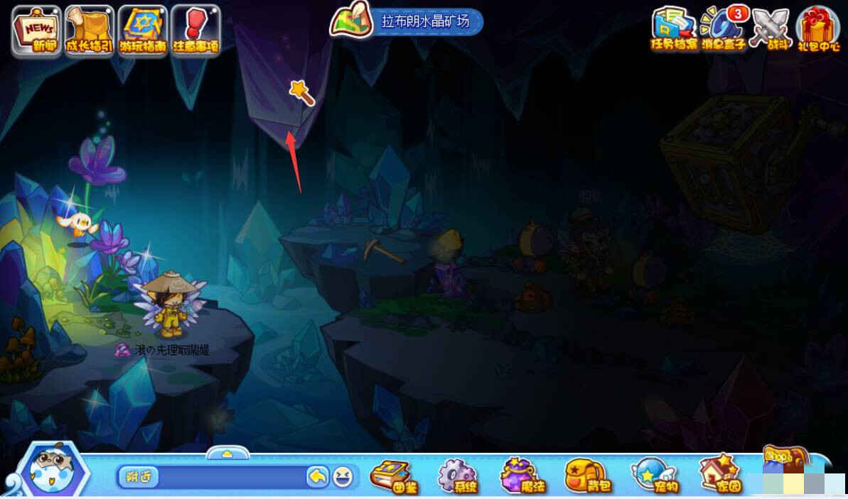 首先(shouxian)要求来(lai)到拉布朗水晶矿zheli,然後点击(ji)魔法(magic)。