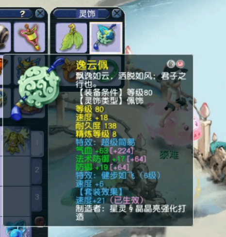 80级超(chao)级(ji)简易佩饰,主屬性速度(speed),下排气血法防防(fang)御(yu),带6级健步如飞。