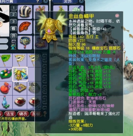 140级无级(ji)别男衣,16锻翡翠石,熔炼后防(fang)御(yu)+261,力量-9,耐力+26。